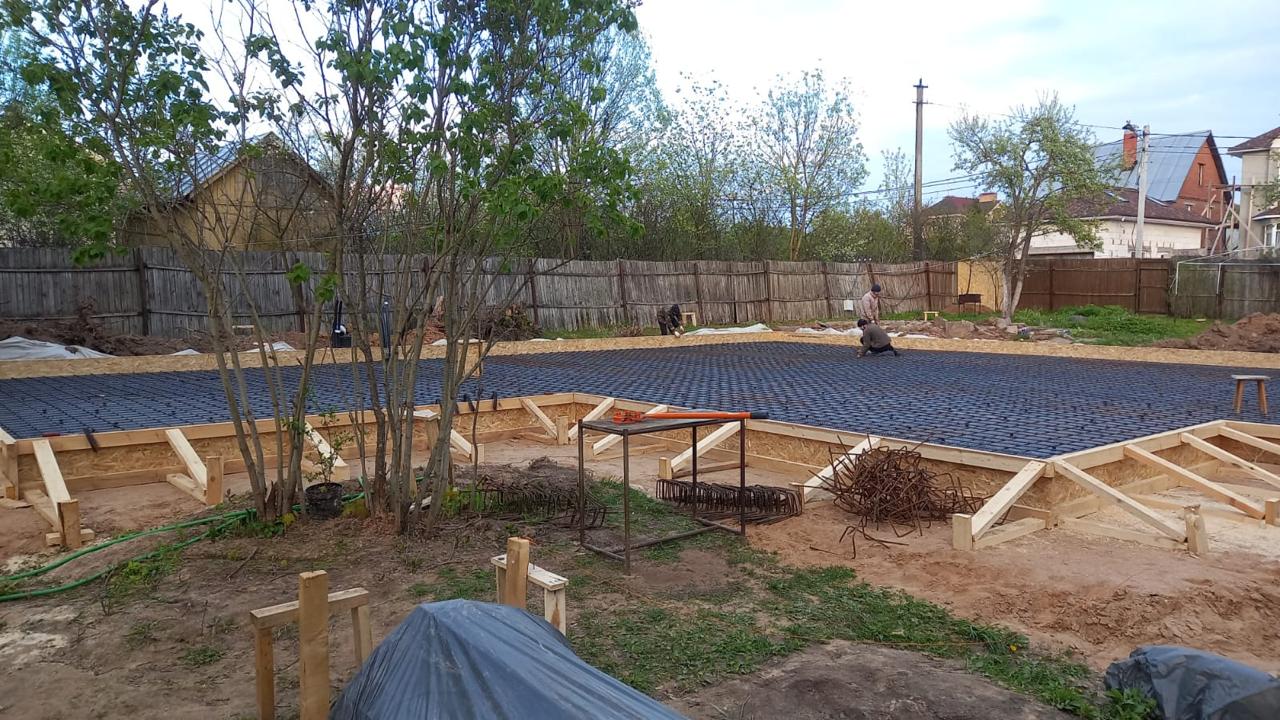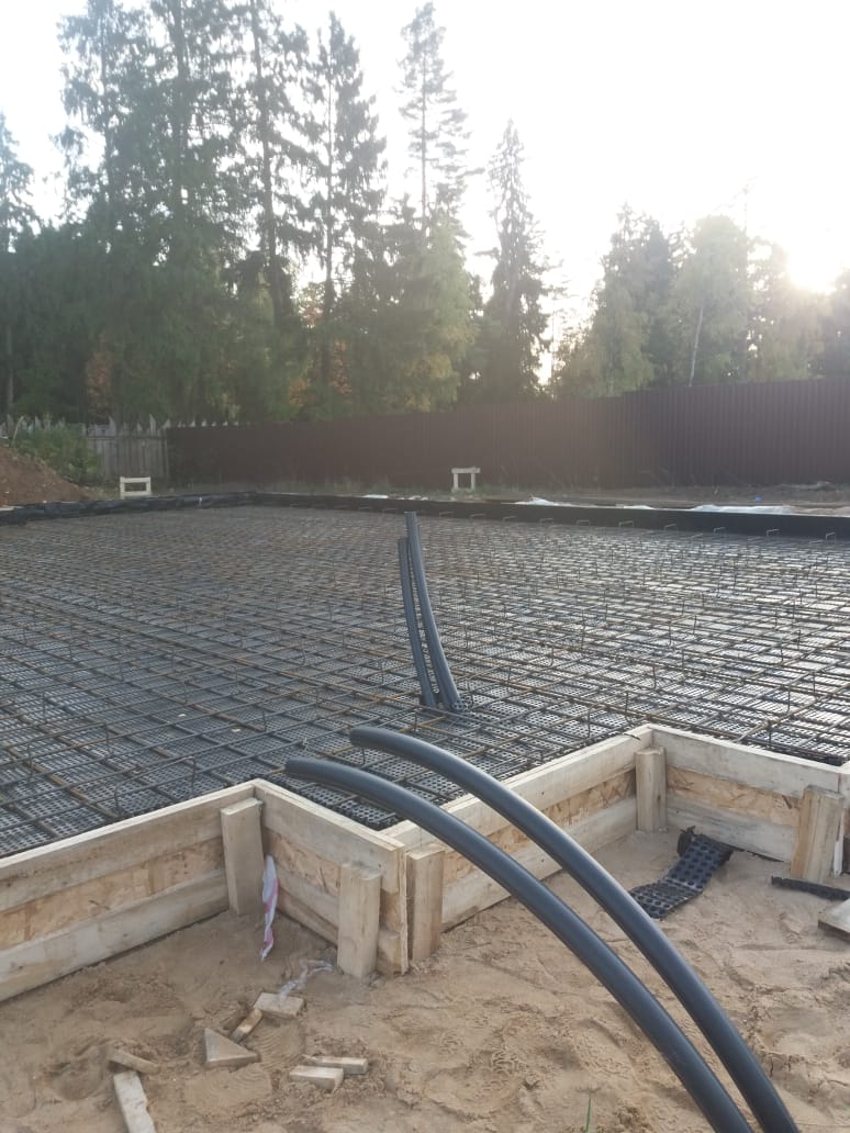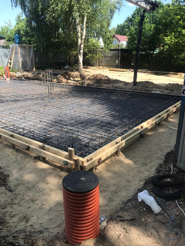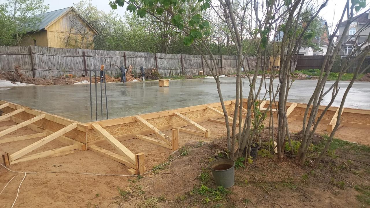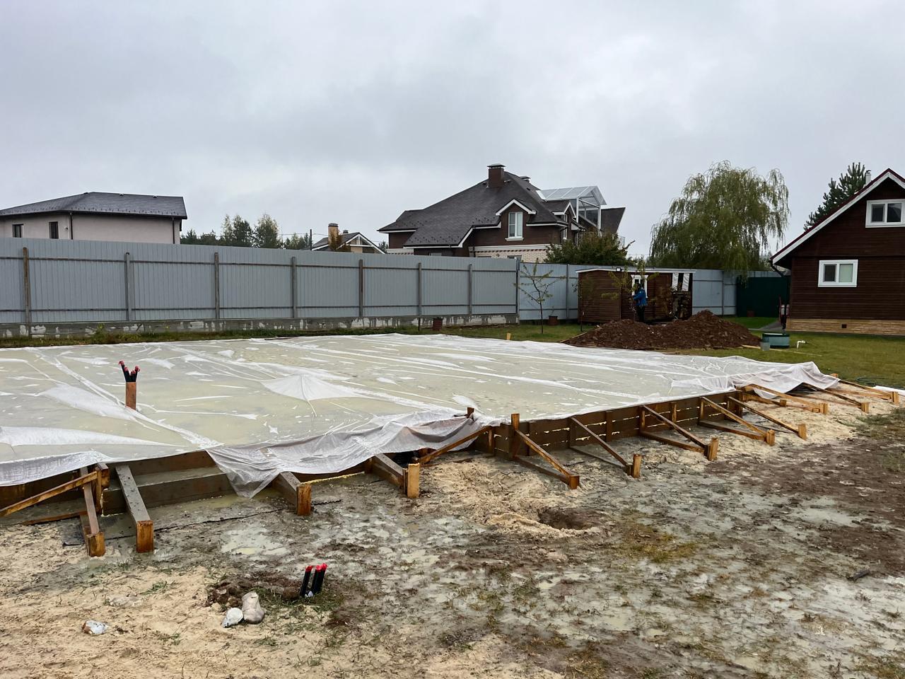 Устанавливается деревянная или металлическая опалубка, которая будет удерживать бетон в нужной форме во время его заливки и затвердевания.