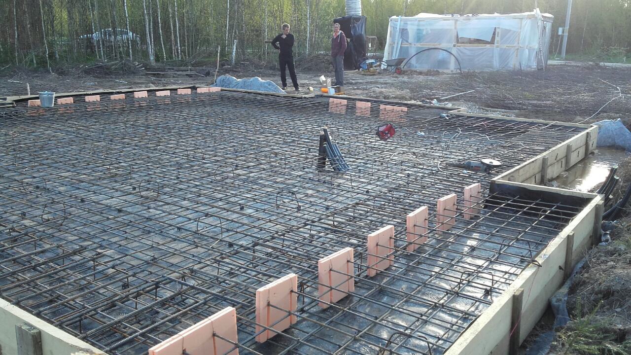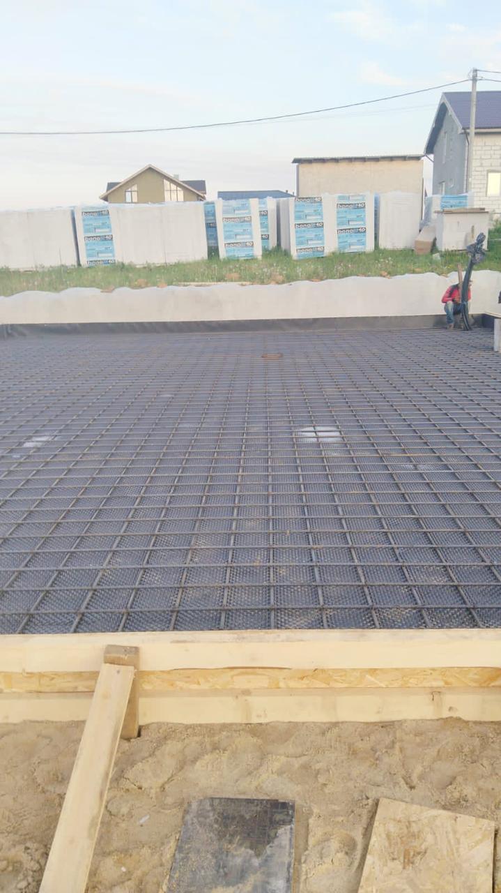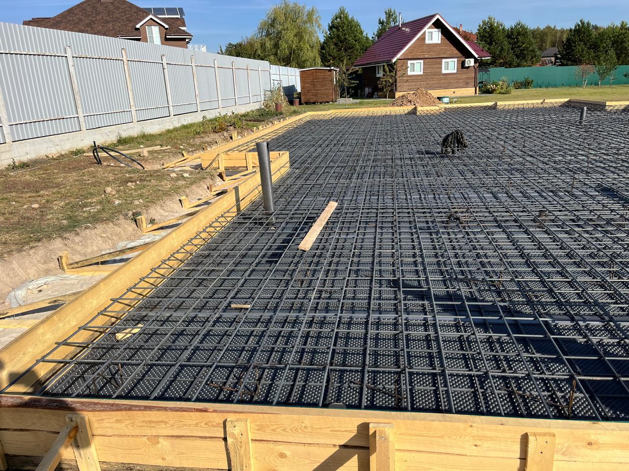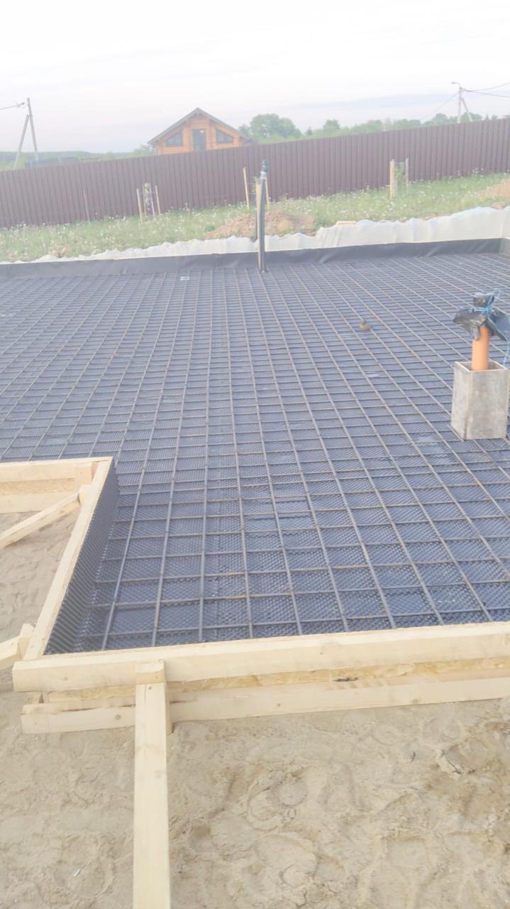 Устанавливается арматурная сетка, которая придаёт фундаменту дополнительную прочность