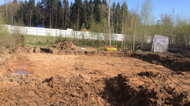 На этом этапе выкапывается котлован, соответствующий размерам будущего фундамента, с учётом всех необходимых глубин и уклонов.